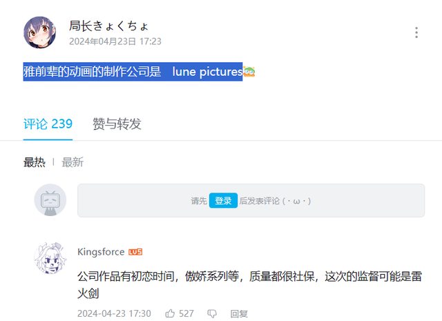 作者B站發文