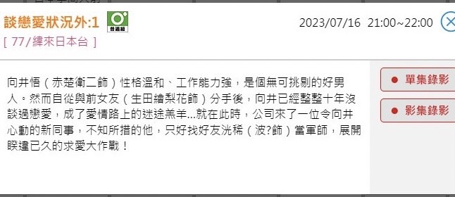 推 kenshin078: 緯來命名都喜歡讓人一看就可以想像或猜測內容 對面的 07/11 19:51