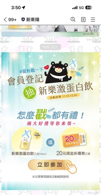 標題[情報] 新東陽會員登記抽新樂激蛋白飲