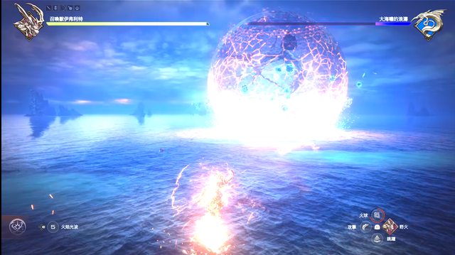 要在限時內把護盾打破,不然就吃大海嘯即死攻擊遊戲結束。