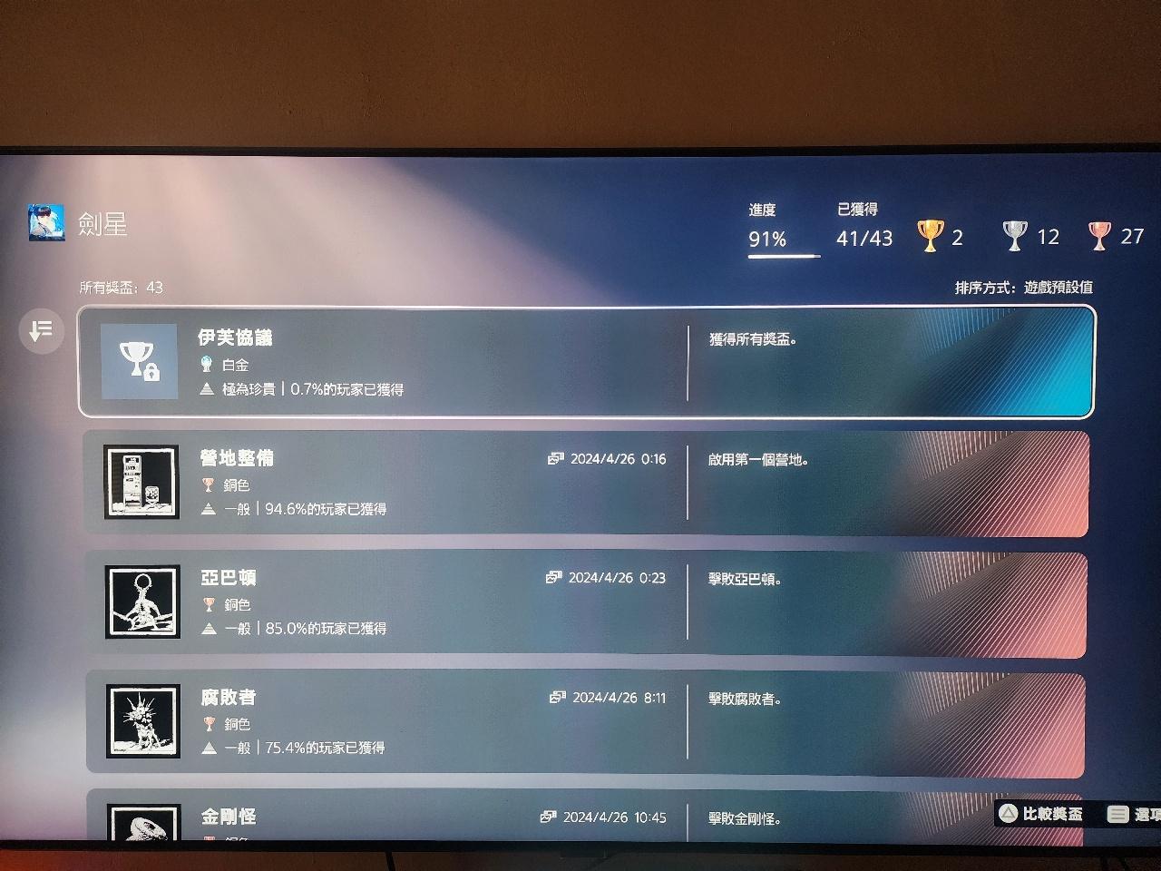 推 mikilin23: 那個我的獎盃顯示41/43...缺失憶的代價..白金伊芙協議 05/04 16:50