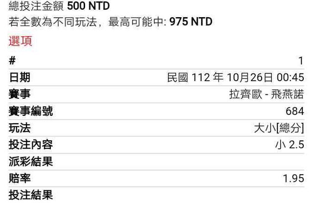※ 文章網址: https://pttbestweb.org.tw/SportLottery/M.1698240944.A.A81