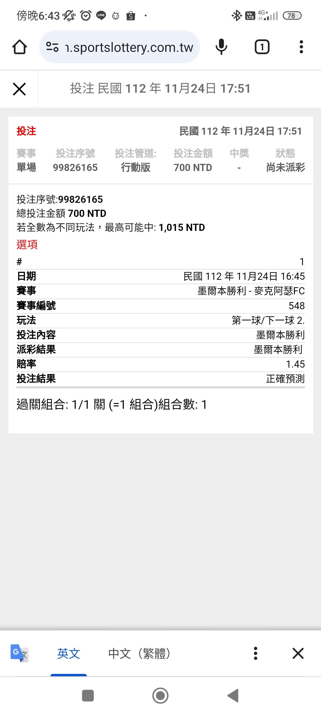 → leepingyo: 六倍應該是下一球的賠率 1.200.49.236 11/24 18:42