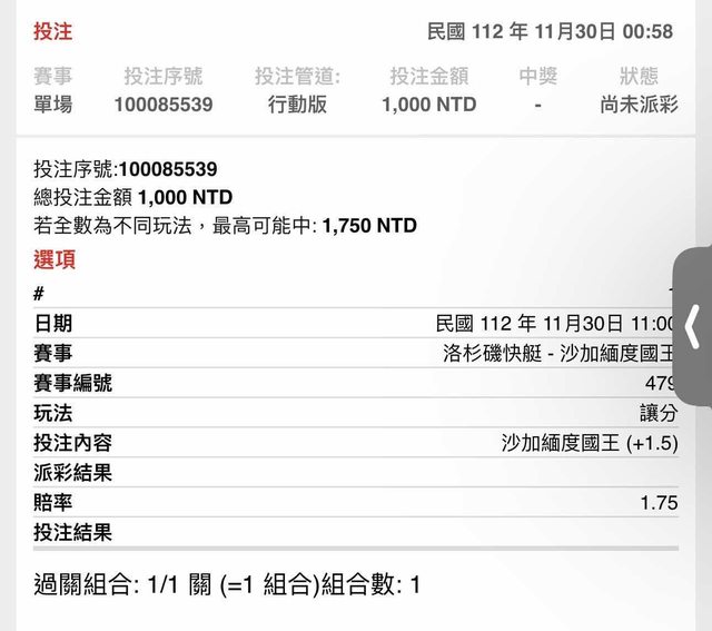 ※ 文章網址: https://pttbestweb.org.tw/SportLottery/M.1701277185.A.D0D