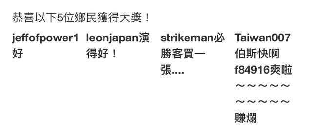 恭喜以下得獎晚點發奶(發放完畢)
