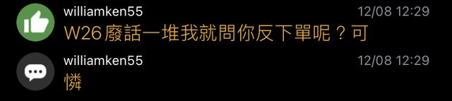 推 williamken55: W26廢話一堆我就問你反下單呢?可 27.242.229.76 12/08 12:29