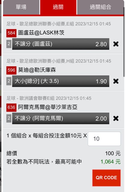 標題[足球] 百元歐霸3*1