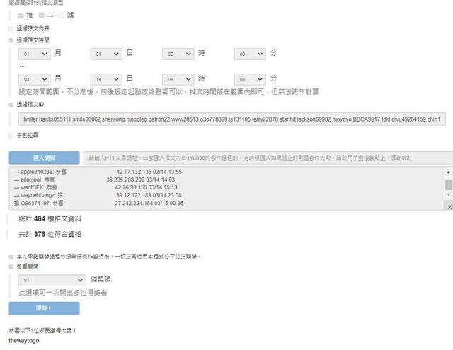 無重複帳號參與抽獎