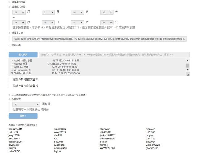 抽30位 (過濾三月有中獎者)