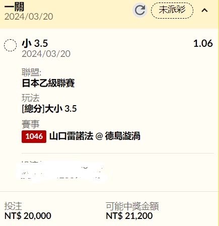 → codoy71: 高賠倒就認了,超低賠如果倒會很不爽 223.138.100.40 03/20 17:01