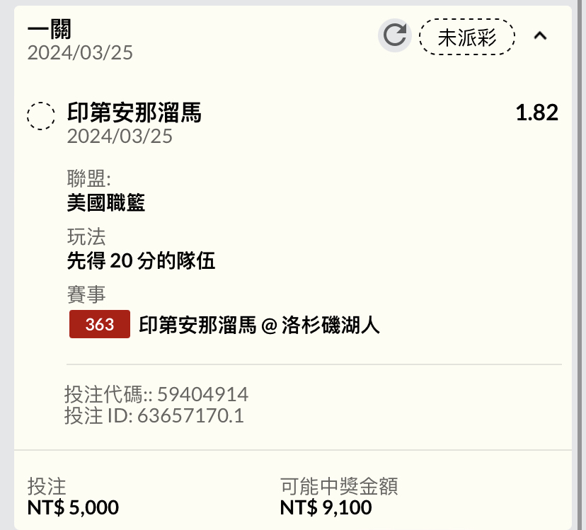 推 Taiwan007: 湖人先20,1.70買了10000 223.138.70.95 03/25 10:17