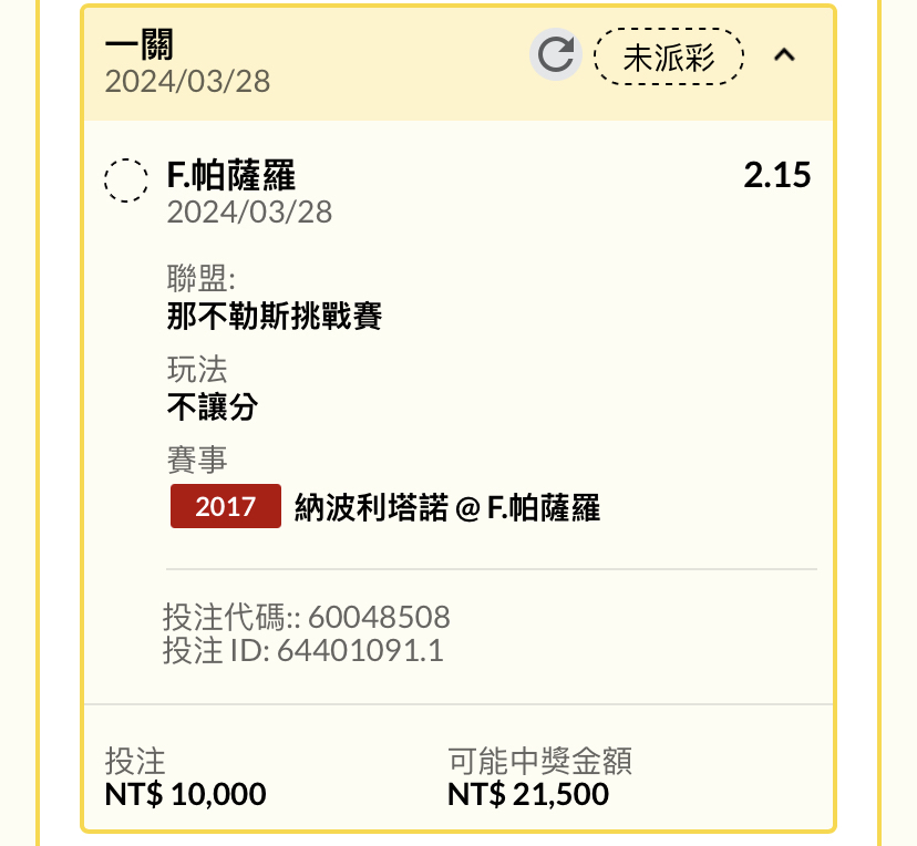 推 JohnDDD: Q1 帕薩PK 帕薩+1.5 大9.5 大10.5 大12.5 42.77.42.246 03/28 17:58