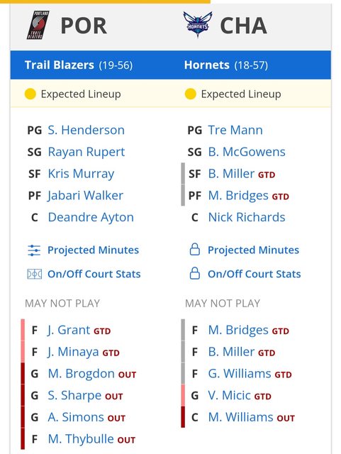 波特蘭拓荒者 @ 夏洛特黃蜂