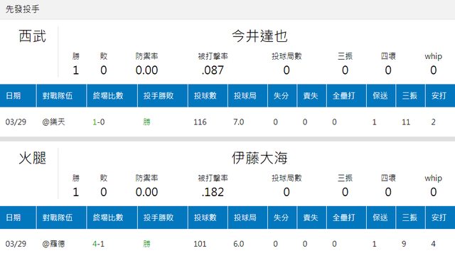 兩邊投手上一場都是壓到1分以下