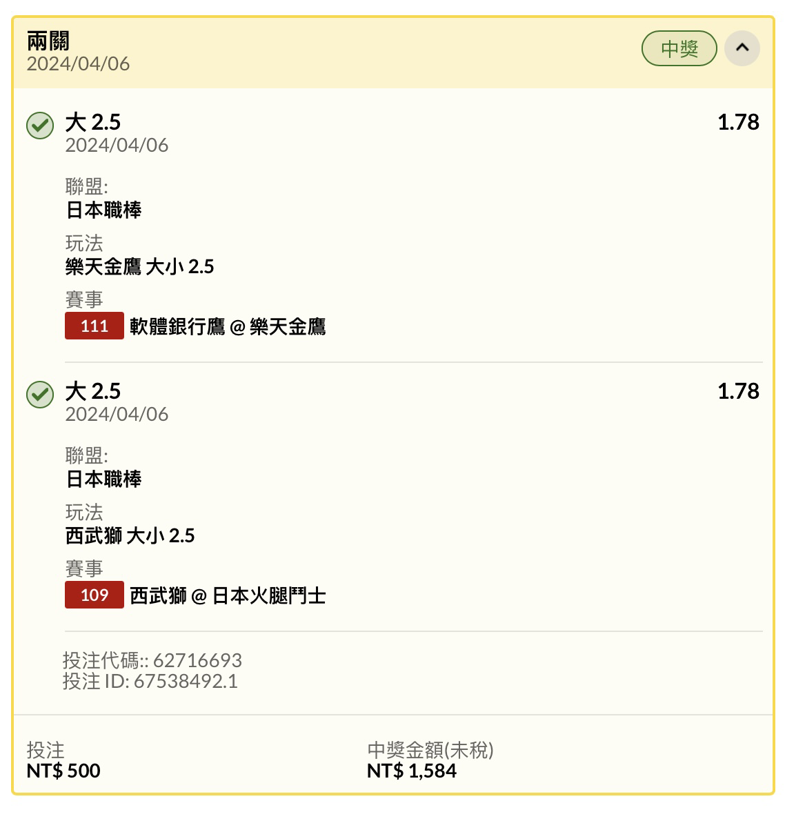 推 lililalaking: 貪心多串了中日場大分 49.216.220.138 04/06 16:51