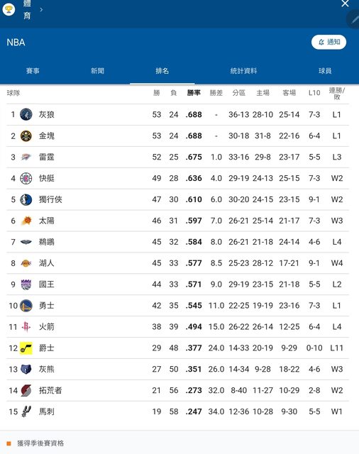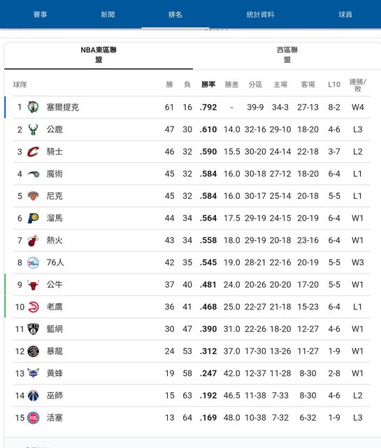 那個這邊先附上目前NBA東西區