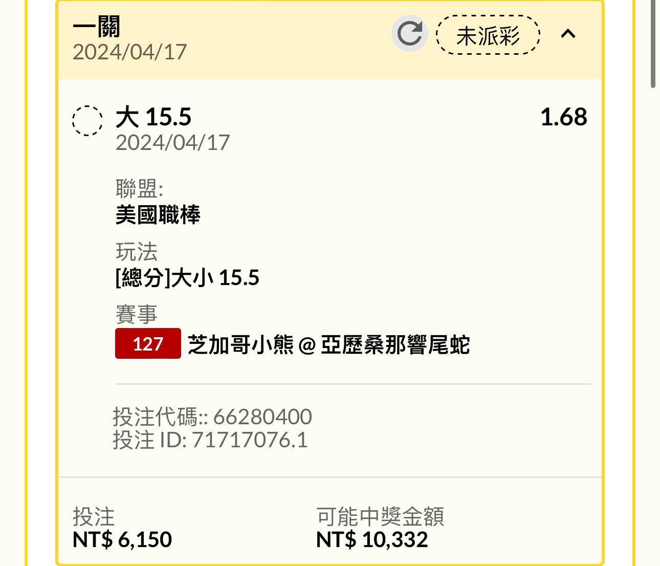 推 cat07280: 三串一 串到廢物巨人 嗚嗚 39.10.1.201 04/17 10:24