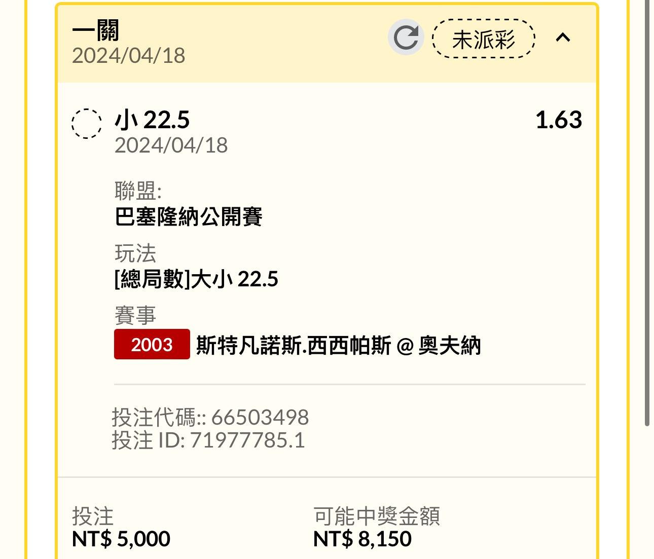 → simonangel: 這場收三場 第一盤主+2.5 全場22.5小 1.169.150.95 04/18 01:59