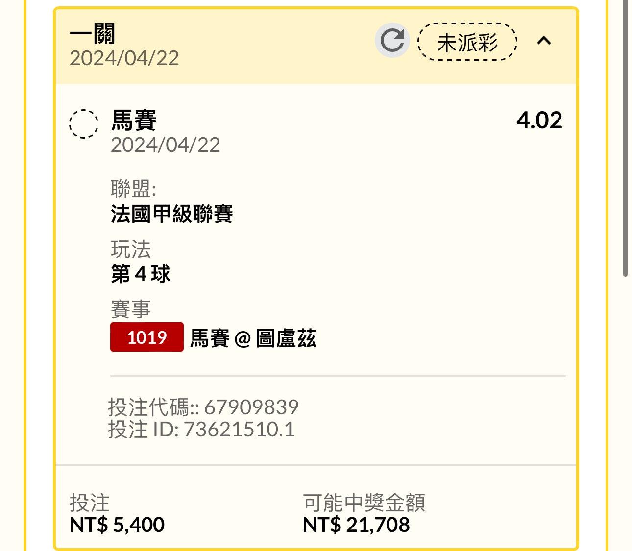 → lotterywin: 我已經報啦 我看三球103.234.206.243 04/22 02:05
