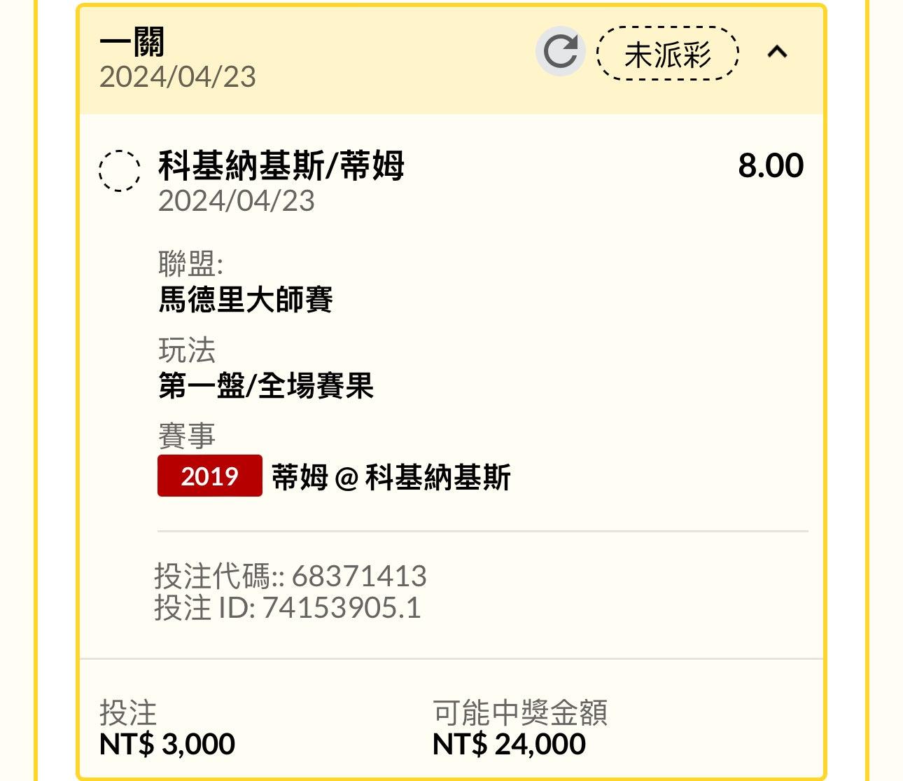 推 simonangel: 我買了一個第一盤主/全場提姆 有8倍 59.115.71.136 04/23 21:32