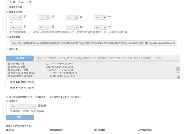 無重複帳號參與抽獎