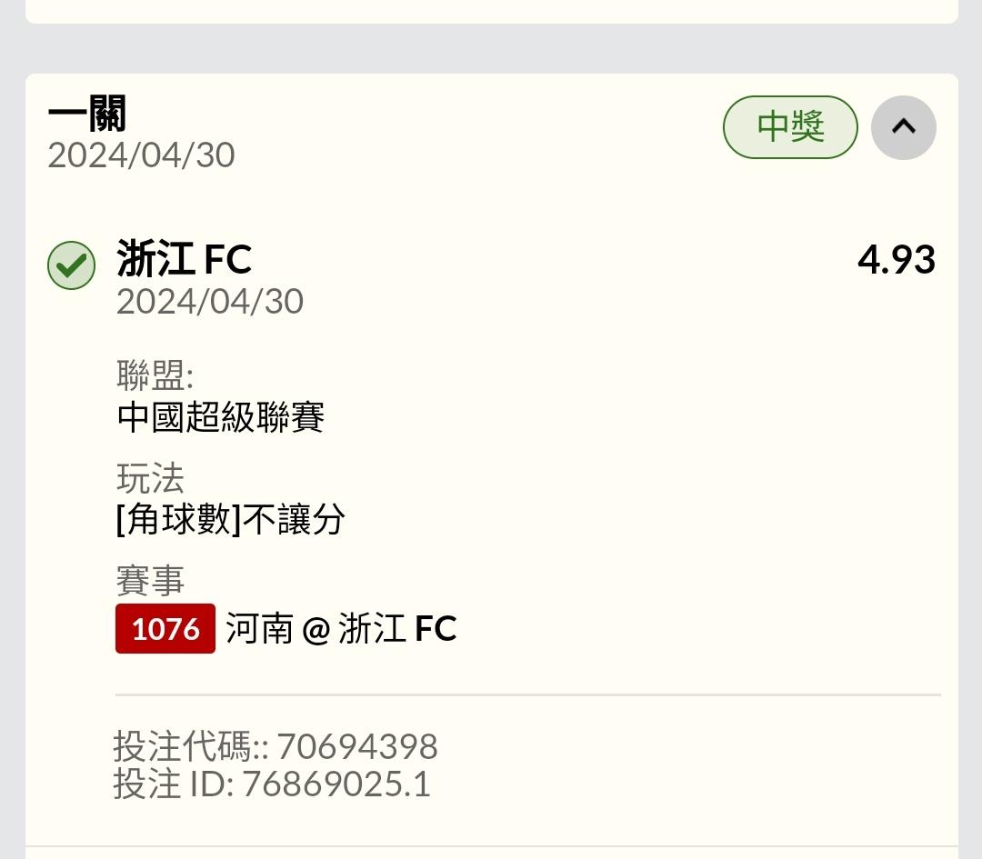 26場連發 河南@浙江 FC 16‘ 浙江F C(點) 36‘ 浙江F C 44’ 浙江F C 45’+7 河南(點) ——- 1:3 H T ——-角(3:2) 90‘+1 浙江F C ——- 1:4 F T ——-角(6:7) https://i.imgur.com/YrJOjxX.jpeg