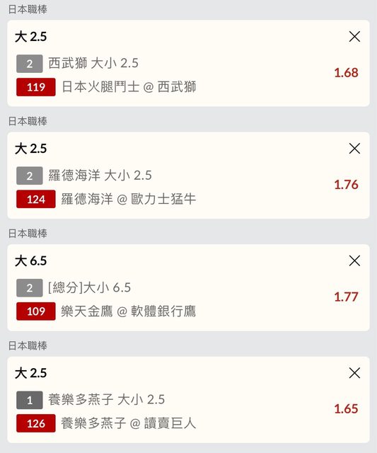 109樂天/軟銀6.5大1.77