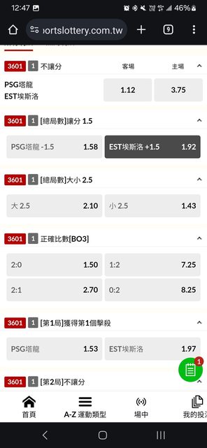 psg讓分跟EST受讓平盤