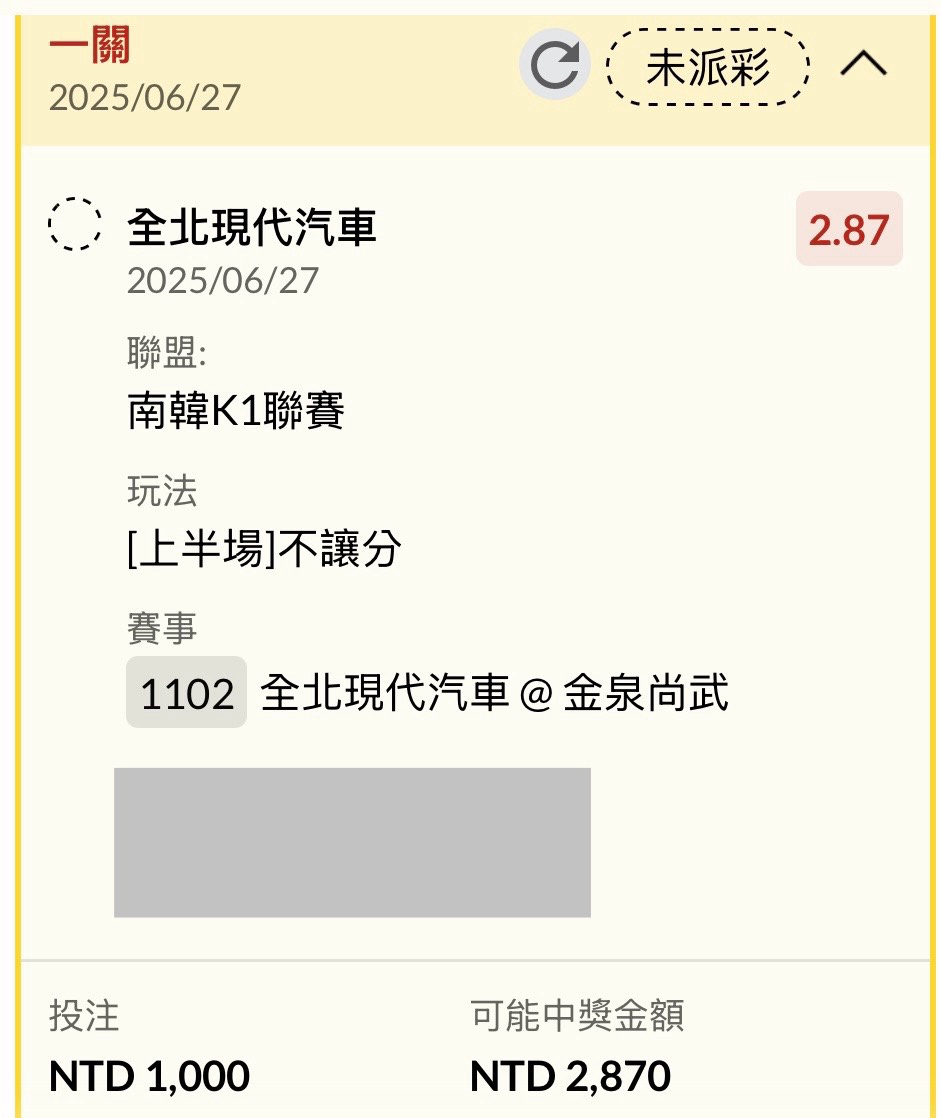 推 z954008: 無腦2.5大 金泉場連續5場小 這場大分機 1.162.97.238 06/27 19:35