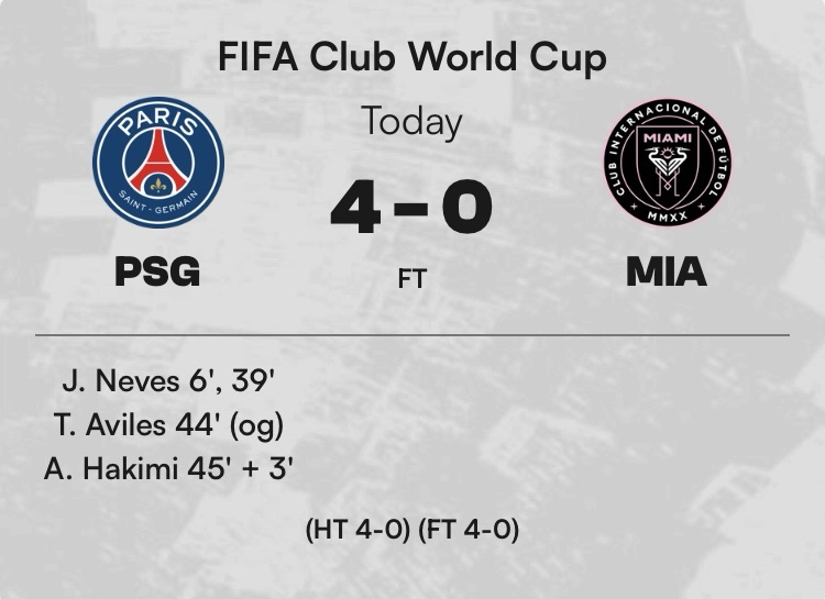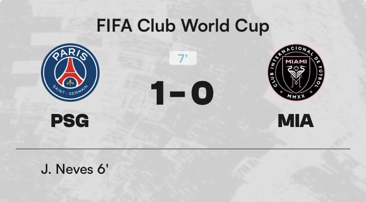 國際邁阿密0:0巴黎聖日耳曼 40.00