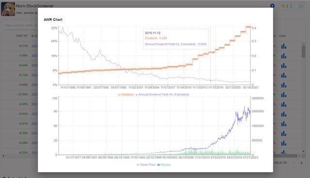 股息持續成長時間最長排序, 第一名是AWR (American States Water Company), 股息持