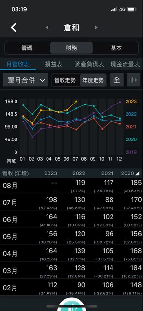 標題Re: [情報] 6538倉和 112年7月營收