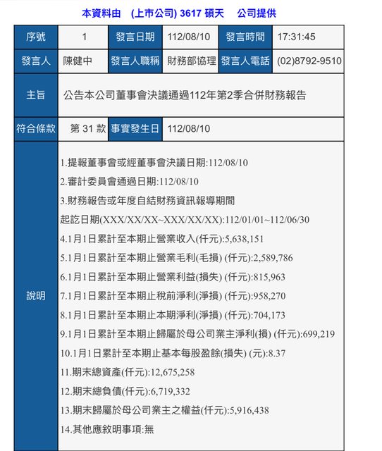 但碩天這次Q2 三率三升 上半年是可怕的8.37元