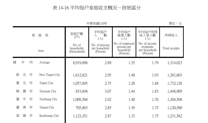 → greysholic : 連家戶所得都台灣比較高(不過台灣平均家戶人數比 08/16 13:31