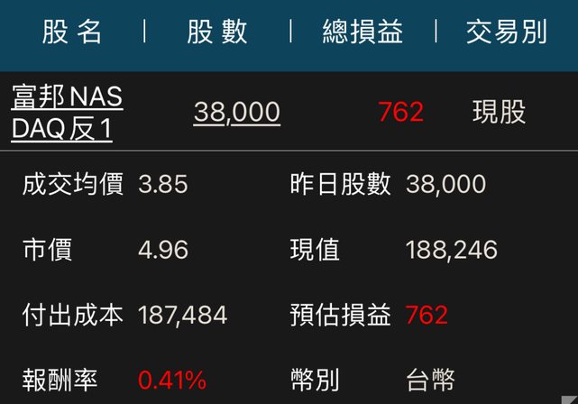 → johnny7757 : 你的標的跟對帳單怎麼是反的? 08/18 12:36