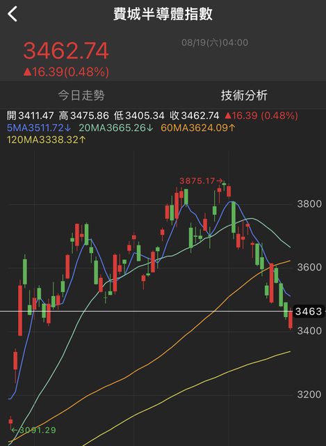 但昨晚費半指數總算收紅在3462.74