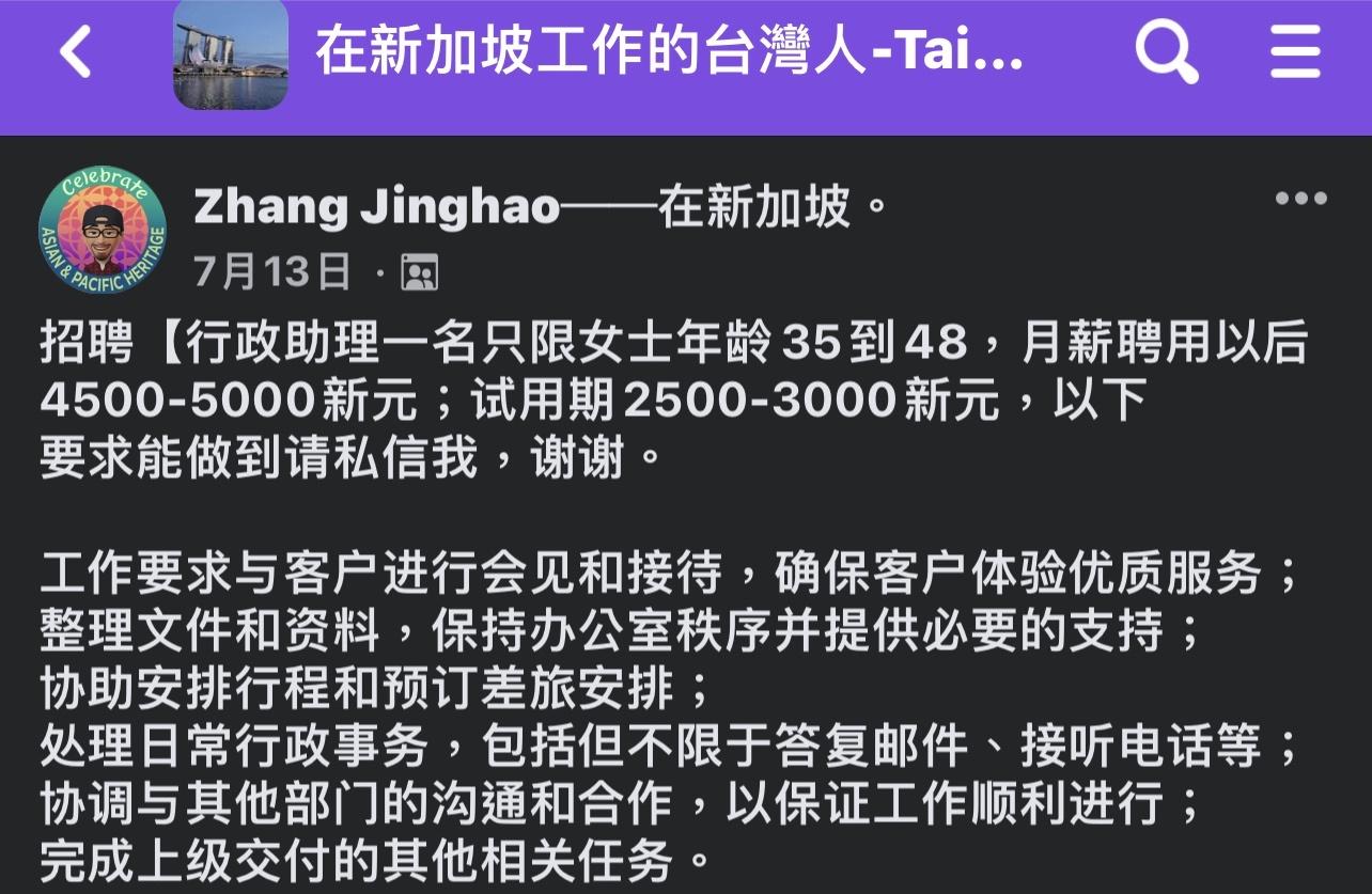 噓 Carr77 : 用腳投票 香港沒人想去新加坡啦 老人要工作就說明存 08/20 02:09