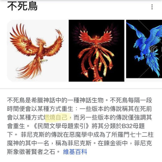 可能是不死鳥,所以會燃燒自己