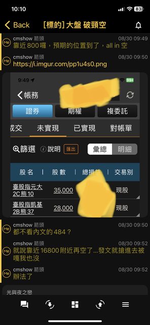 → cmshow : 16800不破可以空,16800上去可以停損一部分,站穩 09/01 13:50