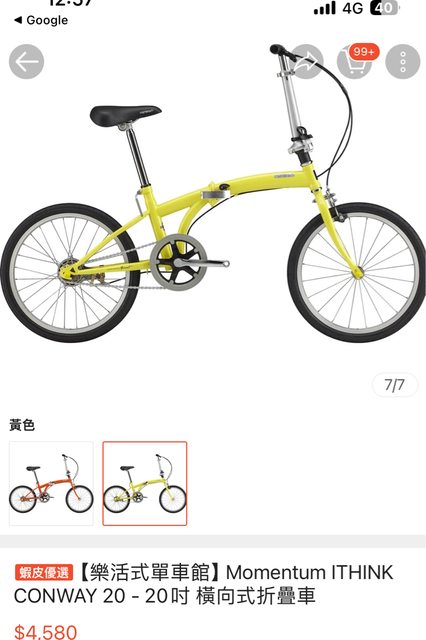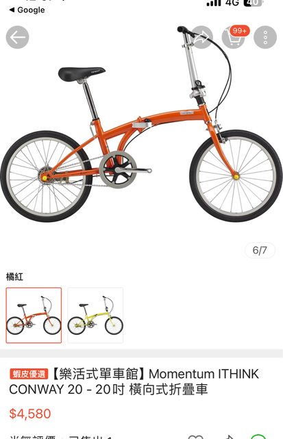 售 捷安特摺疊腳踏車 ithink conway 20 摸彩摸到的 提貨卷 可全台捷安特配合店家取貨 售4000元 自行選擇顏色