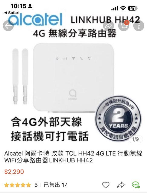 標題[商業] 二手Alcatel HH42CV 4G無線路由器