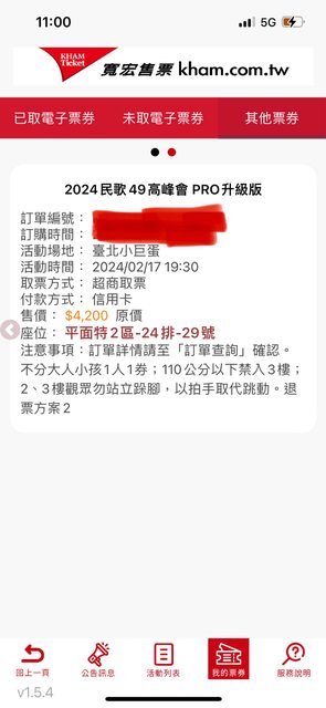 標題[商業] 2/17 小巨蛋民歌演唱會 2張