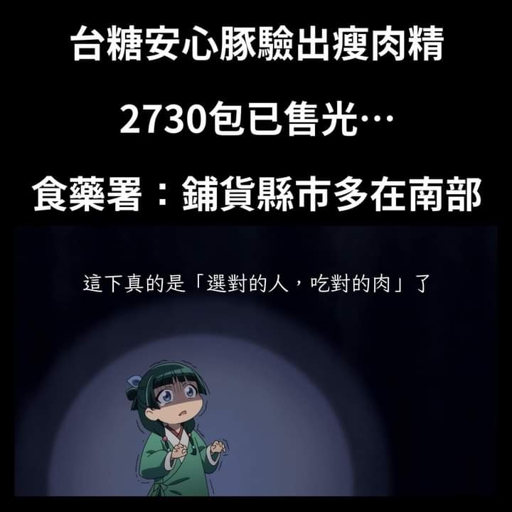 → myaku524 : 但現在這個瘦肉精市面上也沒了,到底哪來的 02/07 20:23