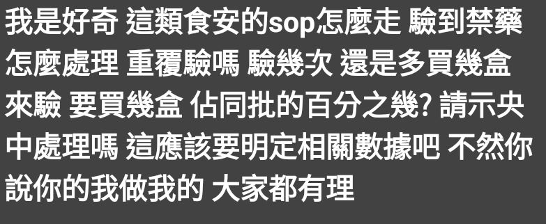 → fspmlp : 不用共驗,檢體也有送食藥署複驗,新聞稿有寫也有 02/07 10:47