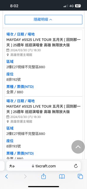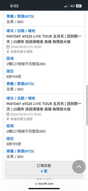 標題五月天演唱會門票 3/30 880*4
