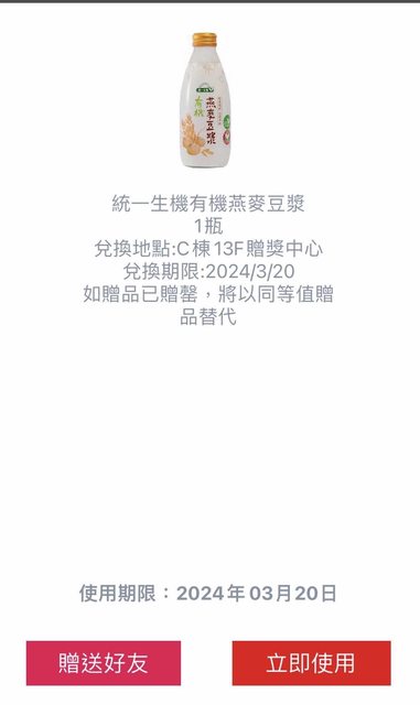 物品說明:中友百貨app贈送,3/20到期