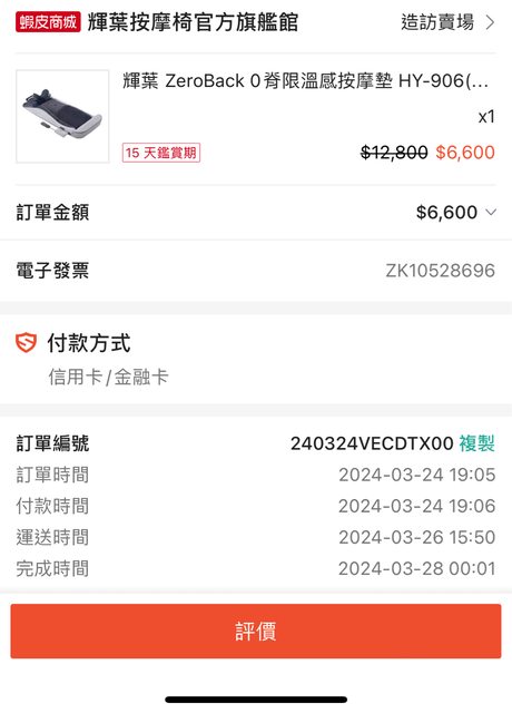 標題[商業] 輝葉 ZeroBack 0脊限溫感按摩墊 HY-906(