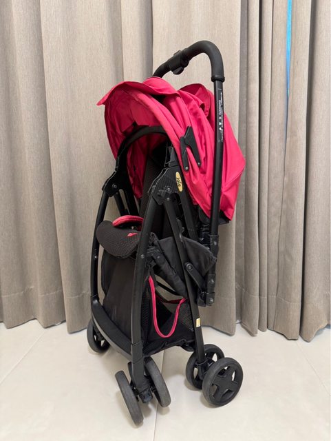 二折手推車,可單手收開,常單獨帶小孩坐高鐵火車覺得很方便。輕量且收起來不佔太多