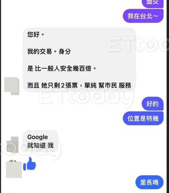 臉書社團碰碰運氣,過程中她在留言處看到1名男子稱「鄰居要轉讓2張門票,我可以代問
