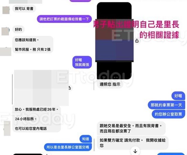 藉歌迷探詢票價,男子表明自己確是里長,坦承有在網路發布代售訊息,他也說「1張1萬